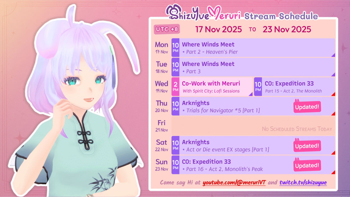 ✦ Schedule for 17 Nov 2025 to 23 Nov 2025 ✦