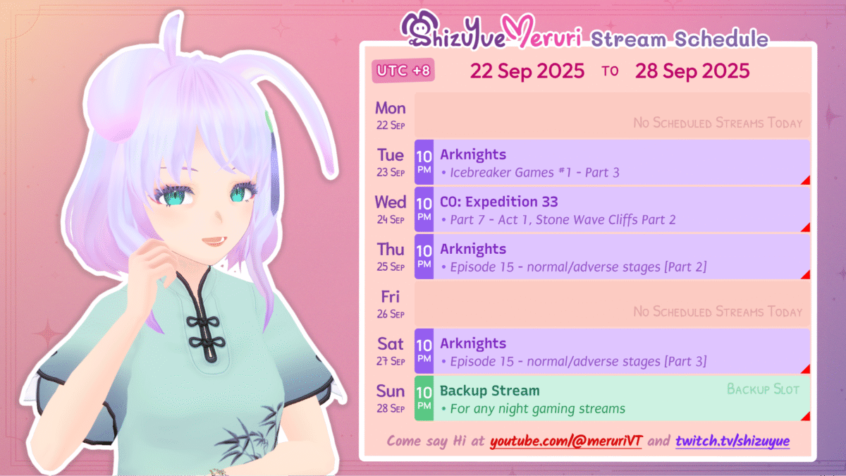 ✦ Schedule for 22 Sep 2025 to 28 Sep 2025 ✦